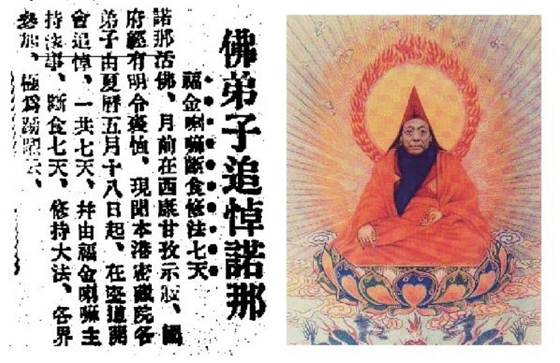 兩年後,又有蔡淵若、劉銳之迎請諾那上師之弟子福金喇嘛來港弘揚密法。